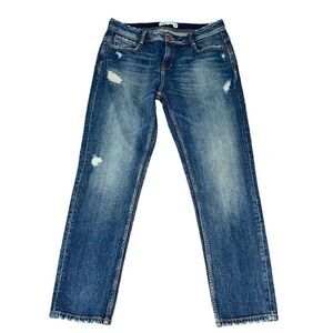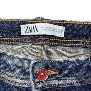 These are in excellent condition, like new. Dark wash with some distressing. Size 4 Waist 14.5” Rise 9” Inseam 27.5”