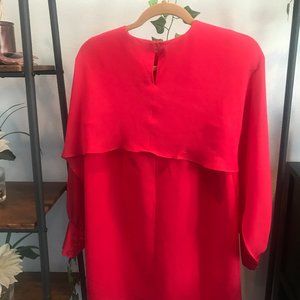 The base is sleeveless but in a cope like fashion the sleeves are attached to the dress. Super cool and unique. I tried to show how the sleeves look on the dress.