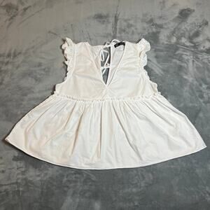 Zara Deep V-Neck Sleeveless Baby Doll Blouse Sz M Ruffle Cotton Cottagecore Boho