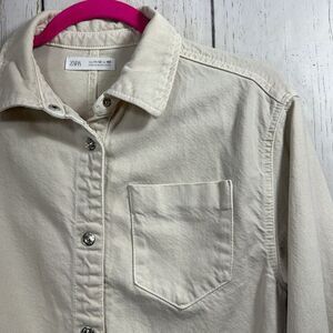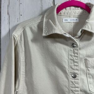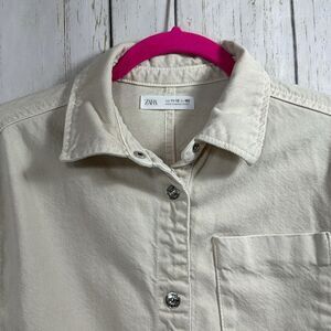 Zara Demin Cream Button Down Casual Pockets Kids Jacket