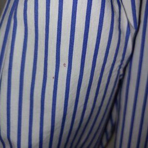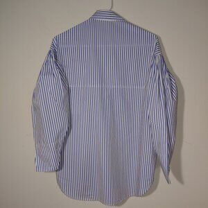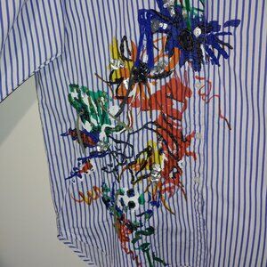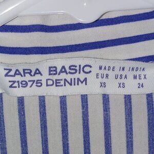 Zara Denim 3/4 Balloon Sleeves Blue White Stripes Embroidered Blouse Size XS