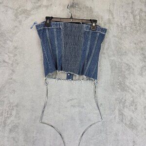 Notes: Modern denim bustier style—please review photos for details and fit.