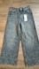 Wide-leg jeans with a distressed look throughout. 13.5” waist lying flat, 31” inseam.