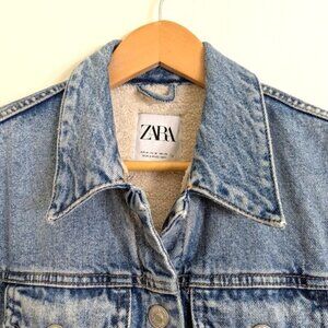 Like New Zara Denim Jacket Button Up with Sherpa Fur Insulation Heavy Winter Jacket Size M