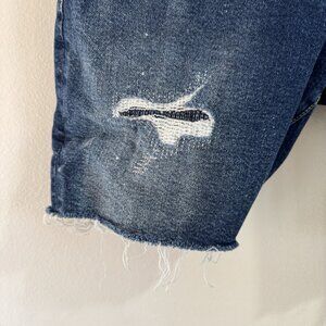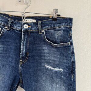 Zara Denim Jean Shorts Mens 32 Distressed Raw Hem Paint Splatter Medium Wash