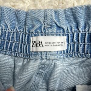 Zara Denim Light Wash Pleated High Waisted Shorts Slight Distressing U4