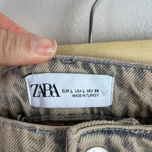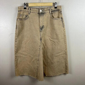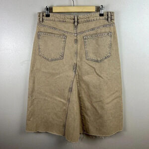 Zara Denim Midi Skirt Size Large A-Line Brown Stone Wash Minimal Classic Modest