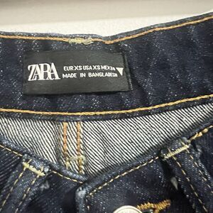 Zara Denim Midi Skirt Size XS Blue Indigo V Rise Dark Wash Y2K Boho Grunge Jean