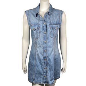 Zara Denim Mini Dress Womens M Sleeveless Snap Up Medium Wash Collar