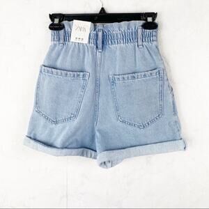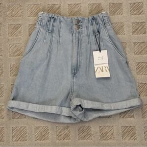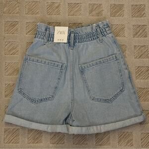 Zara Denim Paperbag High Waist Bermuda Shorts NWT