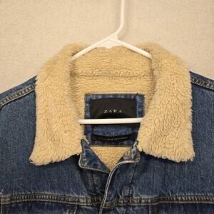 Zara Denim Sherpa Jacket Mens L Blue Fleece Lined Trucker Jean Jacket Coat