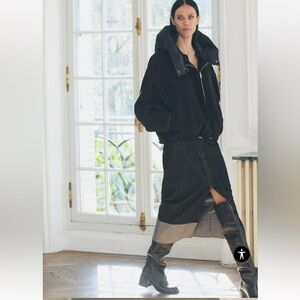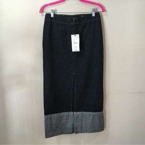 Zara Denim Slit Midi Skirt Dark Blue Zip Hi Waist Women’s Small 9632/271 Y2K 90s