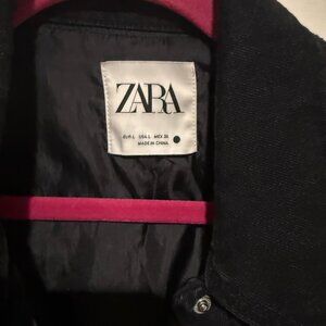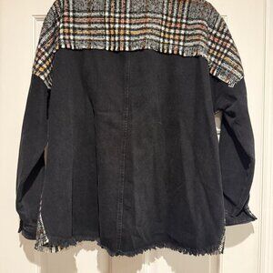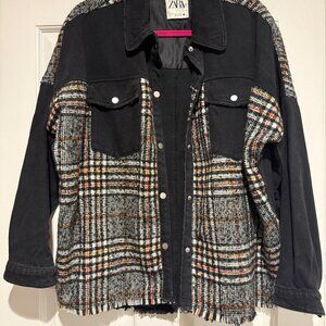 like new, great condition, Zara denim shacket with tweed details. snap closures. black denim and black, white, orange, and red tweed. from a smoke free home