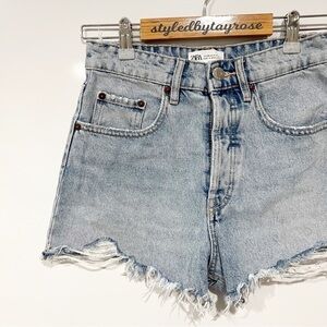 Zara Destroyed High Rise Relaxed Fit Denim Shorts