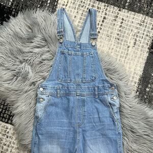 Zara + Disney Mickey Mouse Girl Denim Raw Hem Overalls in Blue Size 13/14