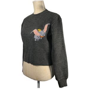 Zara Disney Dumbo Cropped Ribbed Knit Sweater Grey Size Small