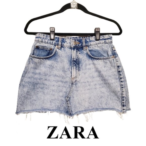 Zara Distressed Blue Denim Mini Skirt.Size Med /28
