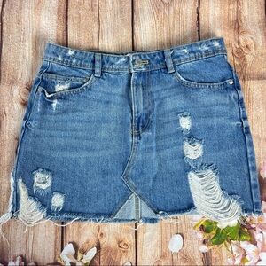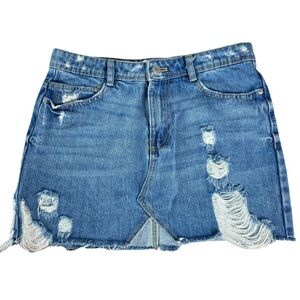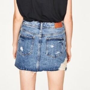 Excellent like new condition Zara Distressed Denim Mini Skirt Blue Color Size S. Zipper with button closure, highly distressed.