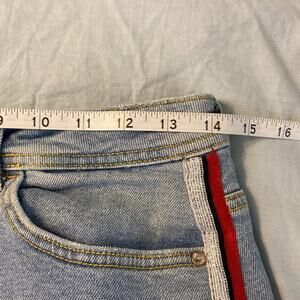 Zara Distressed Denim Racing Stripe Mini Skirt Size Small