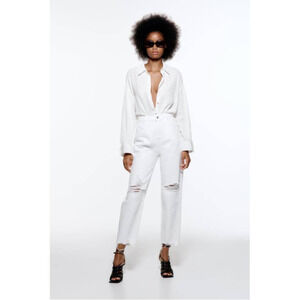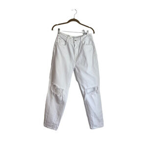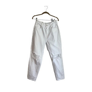Zara Distressed High Waist Mom Jeans White Women's Size 6