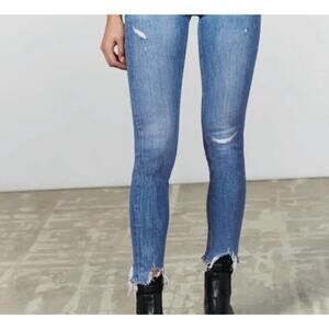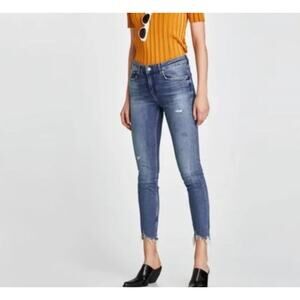 Zara Distressed Skinny Raw Hem Mid Rise Jeans Size 2