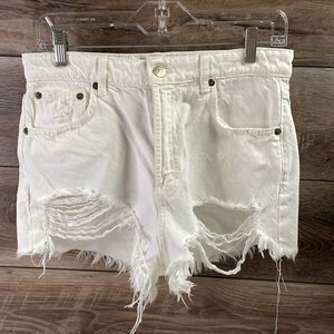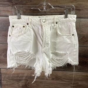 Zara Distressed White Short Bootie Jean Shorts, Size 8