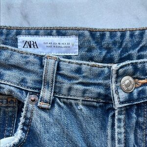 Stylish distressed blue jeans with a classic look. Perfect for casual wear.