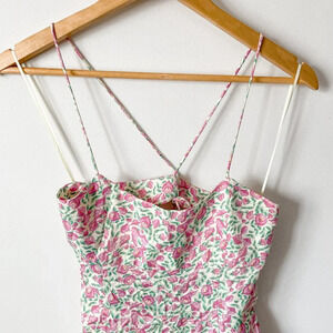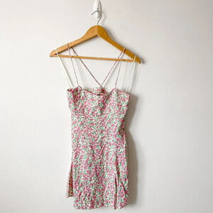 Zara Ditsy Floral Satin Effect Mini Dress Pink Green Size Medium