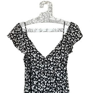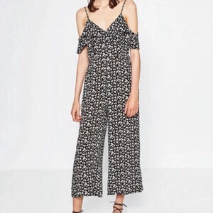 Zara Ditsy Liberty Floral Black & White The Shoulder Jumpsuit Size: S