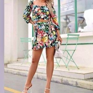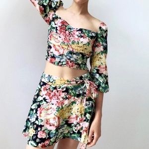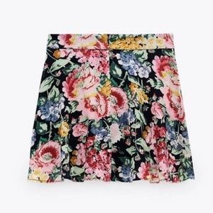 Zara Dora Black Pink Floral Mini Skirt with Tie Waist