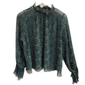 Zara Dot Print Sheer Pleat full Sleeve Top