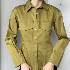 Zara Double Pocket Long Sleeve Button Up (Thick Material), Olive Green, Size M