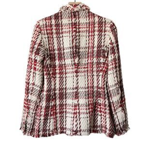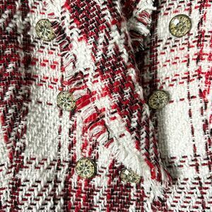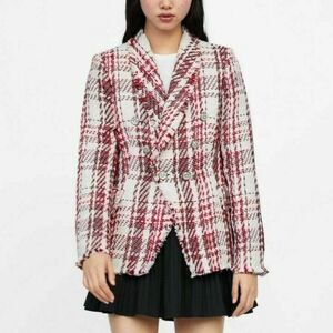 Zara Double-Breasted Red Tweed Blazer Jacket Jewel Buttons Size Small