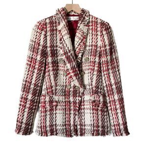 Zara Double-Breasted Red Tweed Blazer Jacket Jewel Buttons. Excellent used condition with no flaws. Size Small.