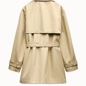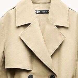 ZARA DOUBLE-BREASTED TRENCH COAT WITH BELT ❤️ Trench coat with a lapel collar and long sleeves with tabs and a button. Front pockets. Matching belt. Double-breasted button fastening. Light camel. NWT. Size Large.