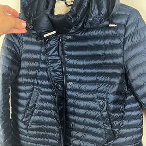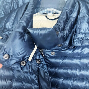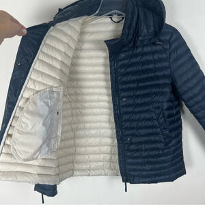 Zara Down Packable Puffer Jacket Coat Medium Navy Blue M Hooded Minimalist
