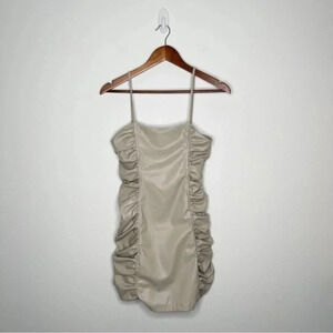 Zara Draped Faux Leather Cream Mini Dress Blogger Fave