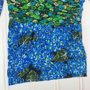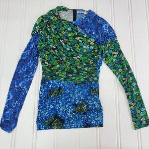 Zara Draped Print Green Blue Floral Top Size US Medium Dainty Long Sleeve