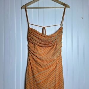 Zara Draped printed orange tulle Elegant Peach Spaghetti Strap Dress XL NWT