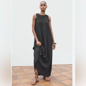 Chic black maxi dress with a sleeveless design. Flows elegantly for versatile wear. Ideal for any occasion.
