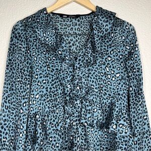 Zara Dress Animal Print Blue Leopard Ruffle Women’s Size Small Cocktail Party