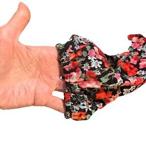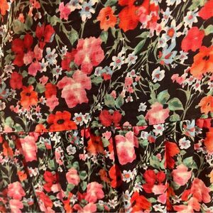 This dress is a floral garden! Vibrant red and pink flowers with some white flowers and green leaves mixed in!