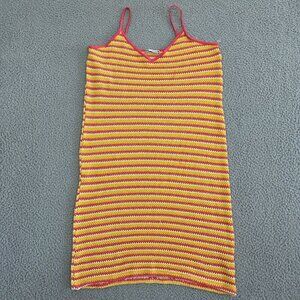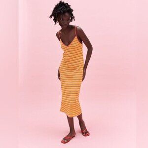 Zara Orange Yellow Striped Jacquard Crochet Knit Midi Dress Size Medium Beach Cover Up Festival Boho Hippie Dopamine Dressing