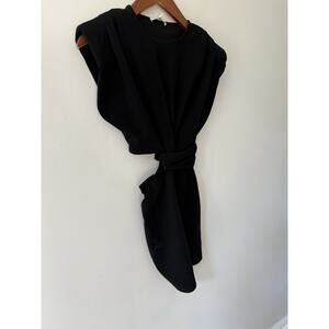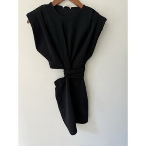 Zara Dress Side Cut Out Short Sleeve Black Sheath Cocktail Size Small Cap Sleeve