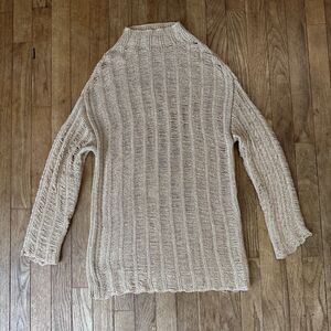 enhance your wardrobe with this zara gold crochet knit sweater dress. size small, featuring a sophisticated mock neck and long sleeves, this short a-line dress showcases a loose knit construction with shimmering metallic gold thread that lends a sheer allure. measuring pit to pit 17 inches and length 28 inches, it offers a relaxed yet elegant silhouette perfect for y2k-inspired or boho-chic styling. ideal for festival outfits or layered looks with a slip. gently worn well-maintained dry cleaned for immediate wear. sustainable luxury at its finest. Great gatsby and roaring 20s inspired.