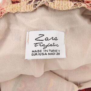 Zara Dress Tan Leaf Floral Pattern Nude Beige Bell Sleeve Embroidered Neckline Size Medium Good Condition