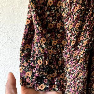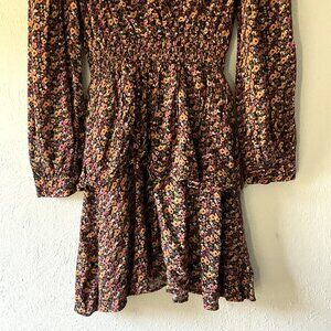 Zara Dress Women Small Deep V-Neck Floral Earthy Smocked Waist Long Sleeve Boho