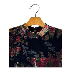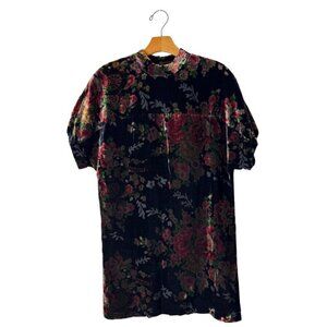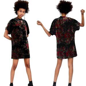 Zara Dress Women XS Black Burnout Velvet Floral High Neck Shift Mini Whimsigoth