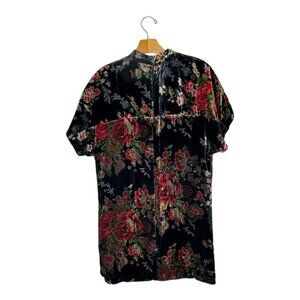 Elevate your wardrobe with this stunning floral velvet mini dress, showcasing intricate floral patterns on a rich black background. Its luxurious velvet material and timeless design offer both comfort and elegance, making it an essential piece for those who appreciate classic fashion.