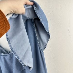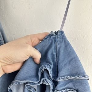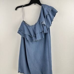 Zara Dress Womens Chambray One Shoulder Ruffled Mini Blue S Denim Collection Zip